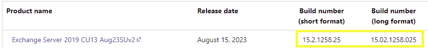 Aktuális Exchange verzió lekérdezése: