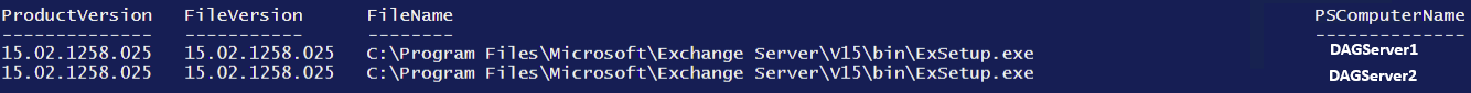 Invoke-Command -ComputerName $Server.Name -ScriptBlock { Get-Command Exsetup.exe | ForEach-Object { $_.FileversionInfo } }