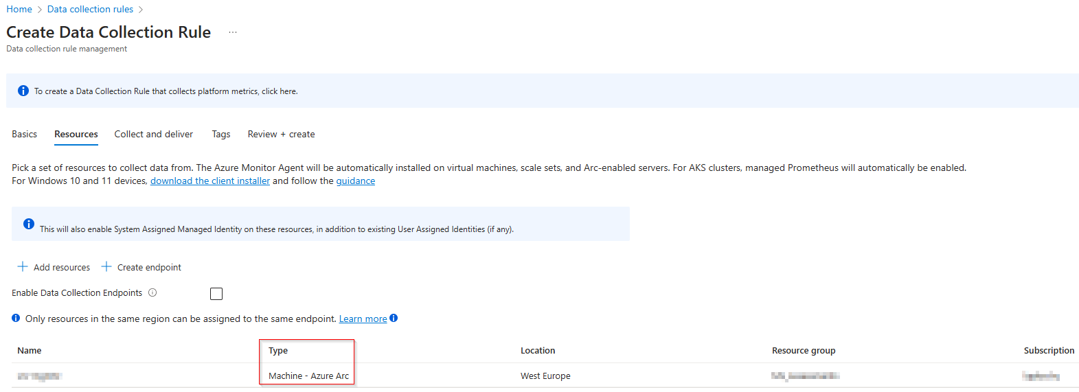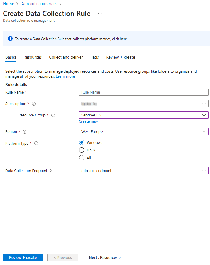 A naplók UDP Syslog protokollon keresztül érkeznek, és az adatokat egy Azure Arc-on keresztül kapcsolt Windows szerver fogja fogadni, amely továbbítja azokat a Sentinel Workspace-be. Ennek megvalósításához szükség lesz egy Data Collection Rule (DCR) létrehozására, amely szabályozza, hogy a beérkező logok milyen formában és milyen célhelyre kerüljenek.