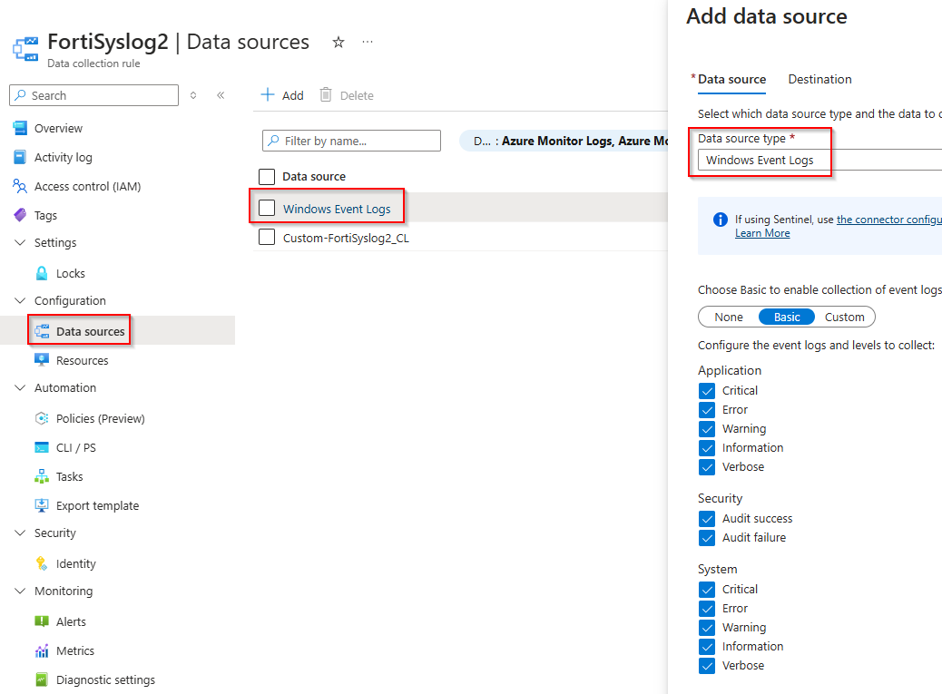 Data Collection Rule beállítása a Log begyűjtéséhez: