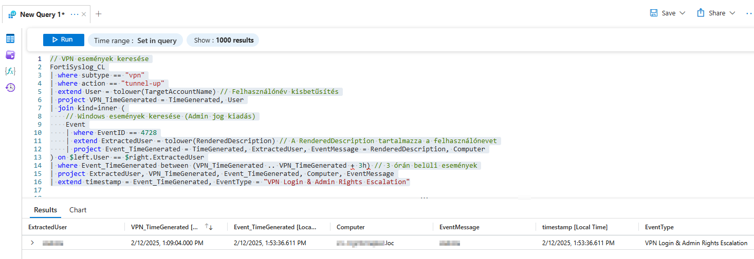 🔹 KQL lekérdezések VPN eseményekre – Egyéni KQL lekérdezésekkel elemezheted a VPN csatlakozásokat és a felhasználói aktivitást.