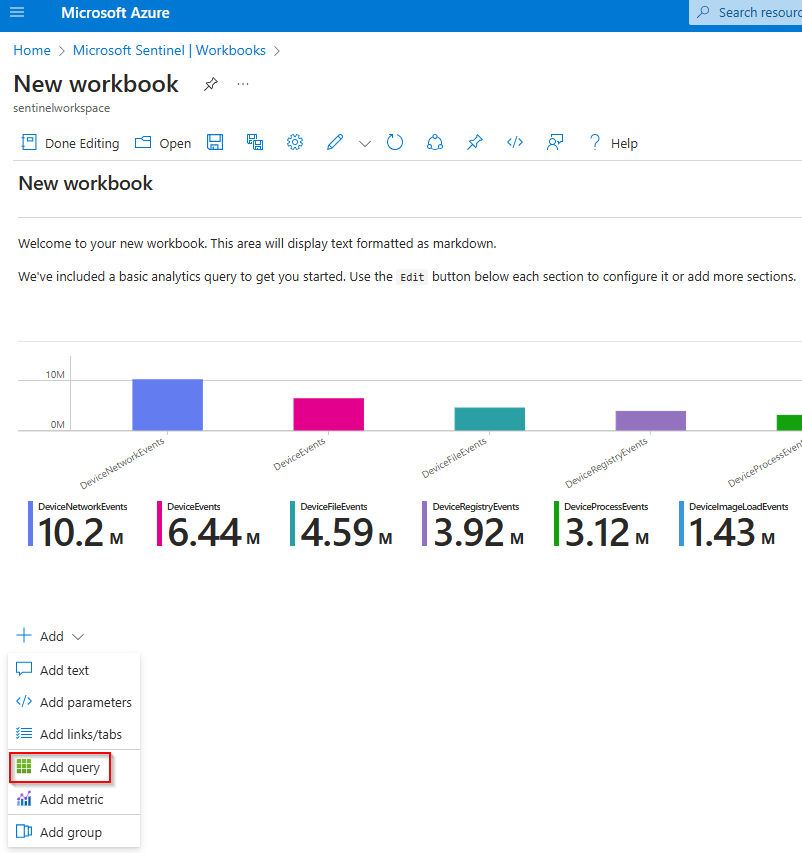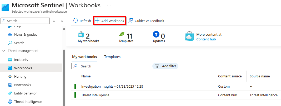 | where action == "tunnel-up" | summarize count() by user| top 10 by count_1️⃣ Navigálj a Microsoft Sentinel → Workbooks menüponthoz