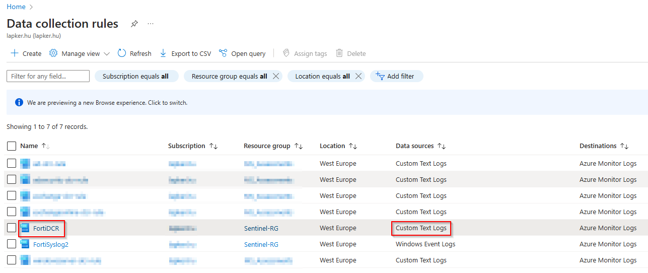 - Egy Data Collection Rule (DCR) biztosítja, hogy a megfelelő adatok a Sentinel-be kerüljenek.