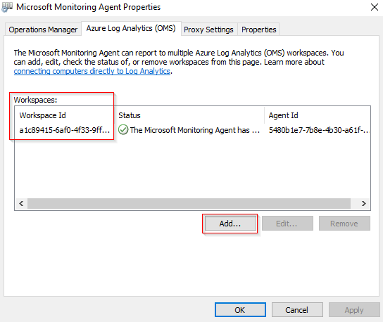 Az alábbi on-premise szerveren a Microsoft Monitoring Agentet megfelelően kell konfigurálni, hogy a megfelelő Sentinel Log Analytics workspace-hez csatlakozzon.