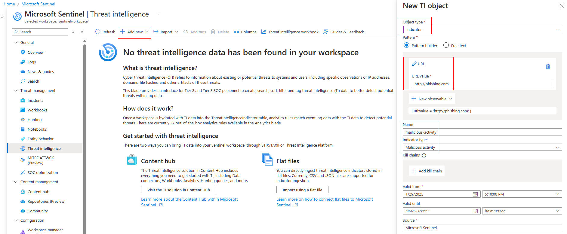 A Sentinel Threat Intelligence egy olyan funkció, amely lehetővé teszi külső fenyegetési adatok (Threat Intelligence, TI) integrálását és kezelését a Microsoft Sentinelben. Ezek az adatok lehetnek gyanús IP-címek, domainek, fájl-hashek vagy egyéb kompromittálódásra utaló indikátorok (IOC-k), amelyeket különböző TI-forrásokból (pl. Microsoft, ISAC, TAXII szerverek) importálhatunk.