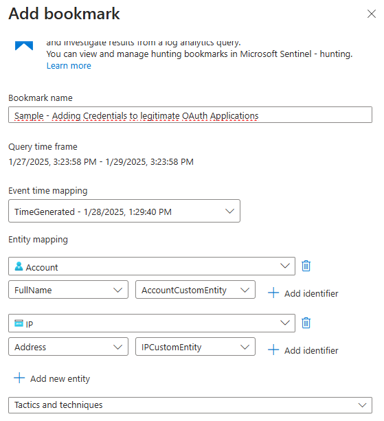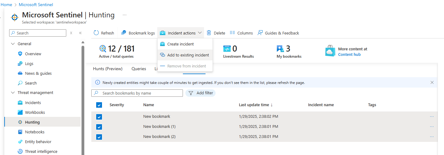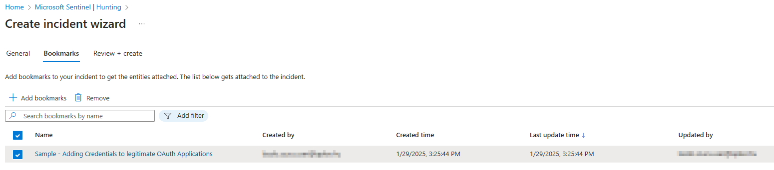 Bookmark-ok hozzáadása egy meglévő incidenshez.