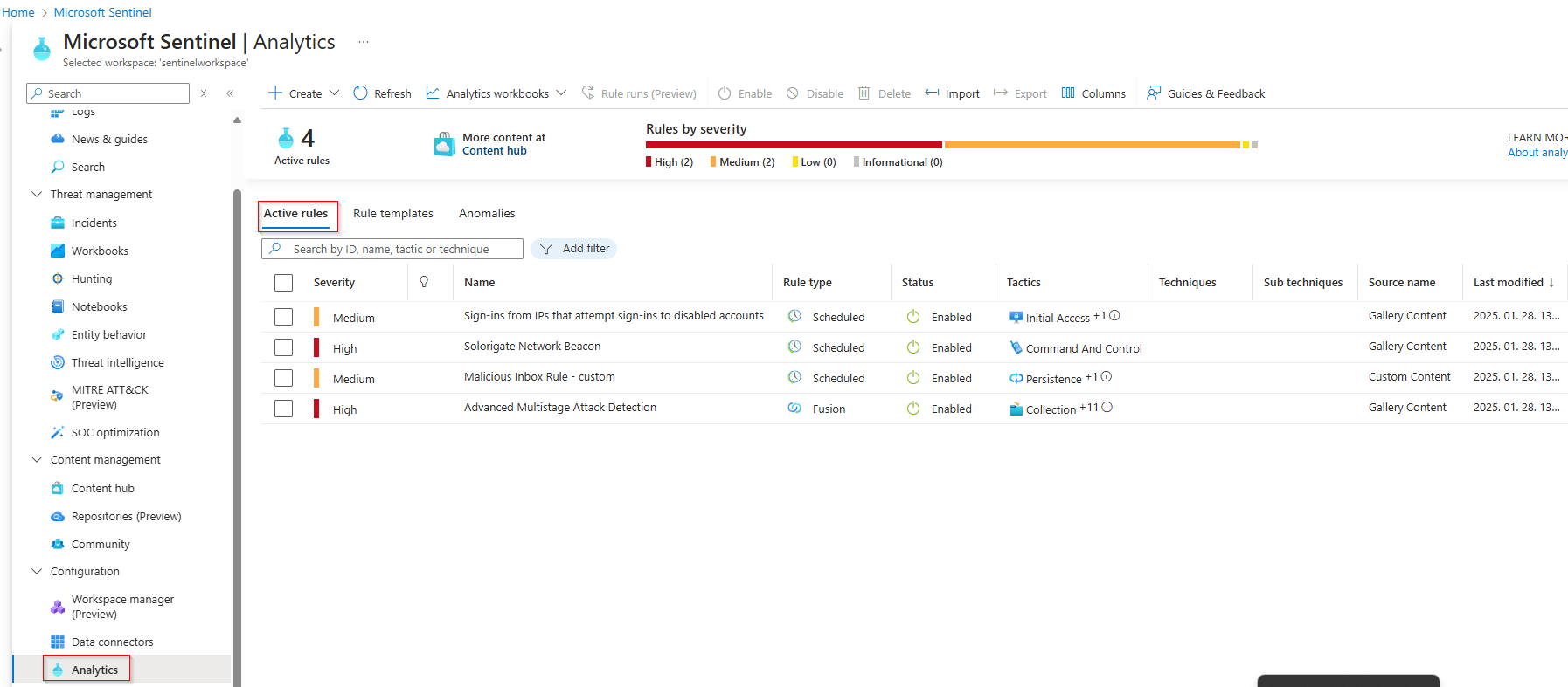 Ez egy saját beállítású szabály, amivel te döntöd el, milyen gyanús tevékenységekre figyeljen a Sentinel, például ha egy felhasználó túl sokszor próbál sikertelenül belépni, vagy ha egy eszköz szokatlan helyről csatlakozik.