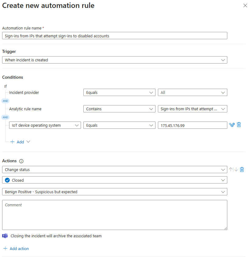 A New Automation Rule a Sentinelben egy előre definiált szabály, amely automatikusan végrehajt bizonyos műveleteket egy incidens vagy riasztás alapján, például hozzárendel egy elemzőt, címkéket ad hozzá, értesítéseket küld, vagy elindít egy playbookot.