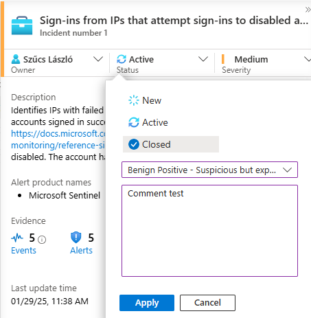 Az incidenst kezelőhöz tudom rendelni, a státuszát lehet állítani, és a súlyossági szintet is tudom szabályozni.