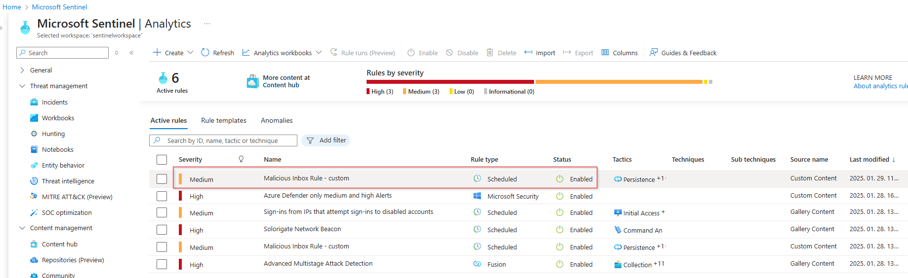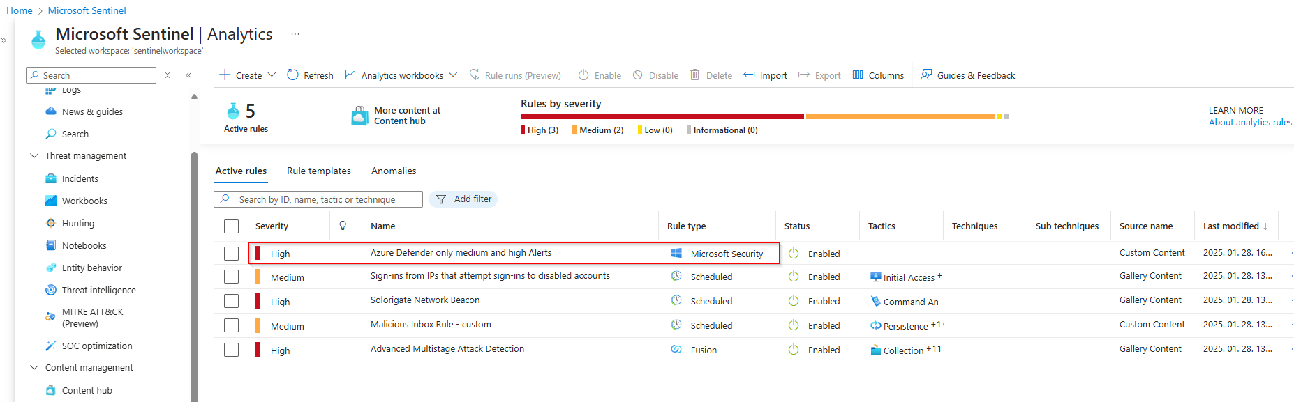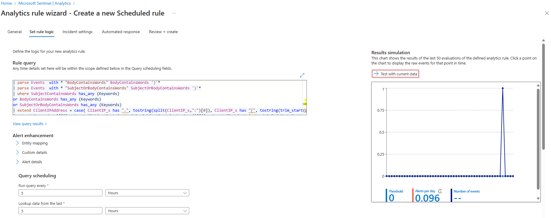 Az elemzési szabályok lehetnek előre definiáltak vagy egyedileg testre szabhatók KQL lekérdezésekkel, így célzott fenyegetésészlelést és proaktív threat huntingot tesznek lehetővé. Ha egy szabály feltételei teljesülnek, akkor a Sentinel automatikusan létrehoz egy incidenst, amelyet a biztonsági csapat kezelhet.
