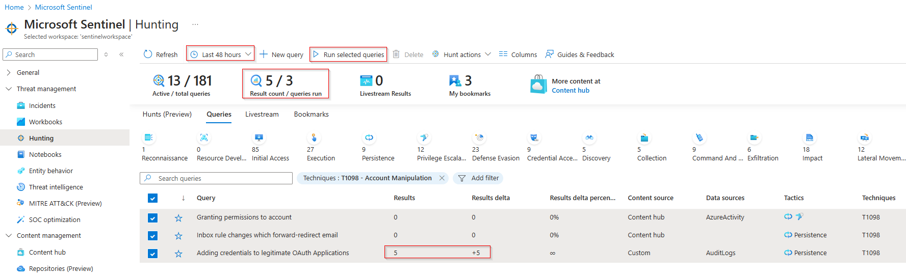 Itt például egy adott „MITRE” alapján keresünk: T1098 Account manipulation