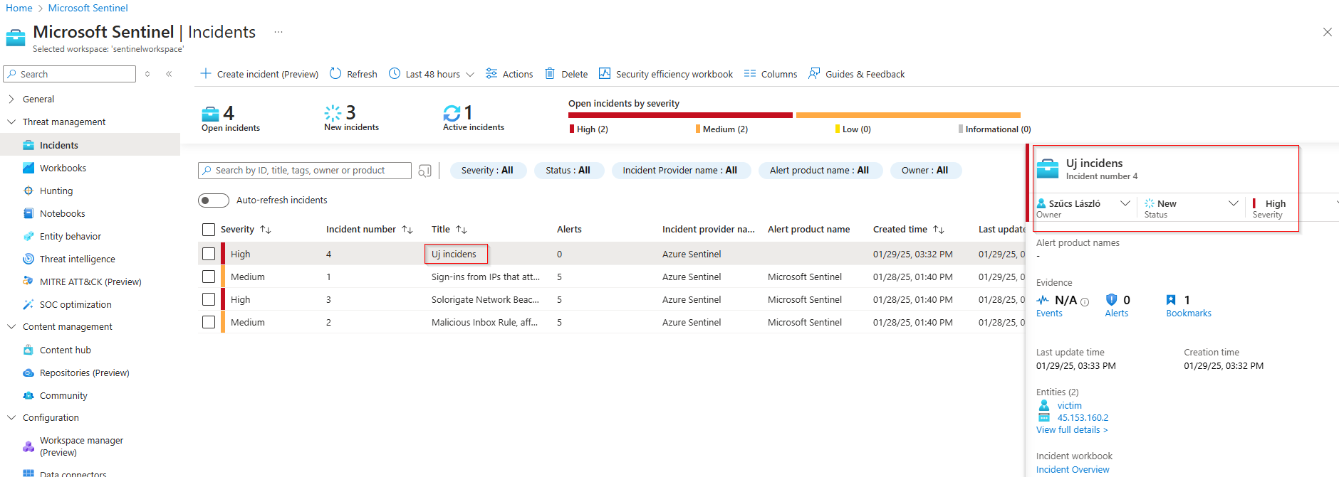 A Microsoft Sentinel incidenskezelése azért van, hogy a biztonsági csapatok ne vesszenek el a rengeteg riasztás között, hanem egyben lássák a valódi fenyegetéseket. Összekapcsolja az egyedi figyelmeztetéseket, így könnyebb kiszűrni, ha egy támadás éppen zajlik, és akár automatikusan is reagálhat, például letilthat egy gyanús IP-t. Ez nemcsak gyorsabbá, hanem egyszerűbbé is teszi a kibervédelmet, kevesebb manuális munkával és gyorsabb válaszidővel.