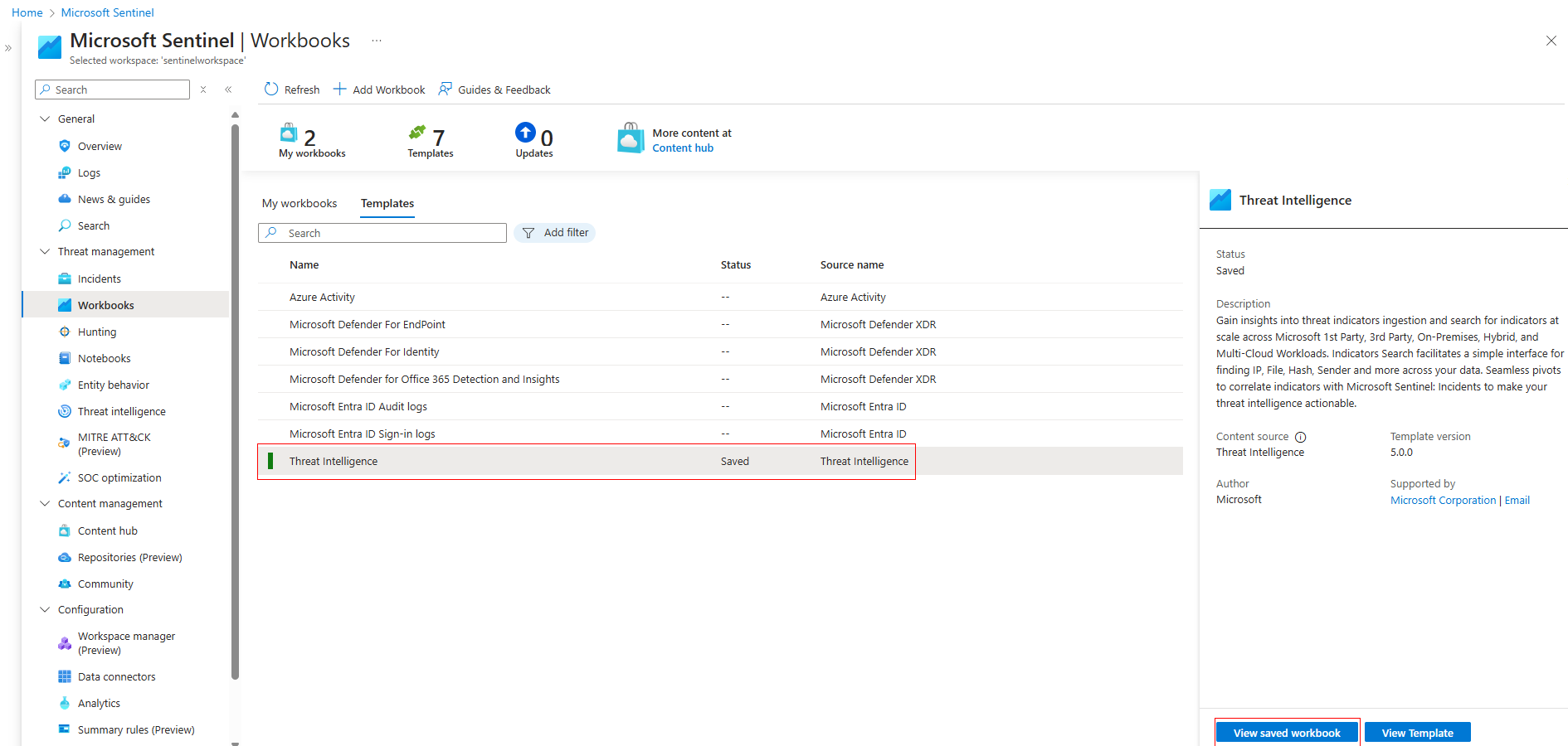 A Threat Intelligence Workbook egy beépített elemző eszköz, amely vizuálisan jeleníti meg a fenyegetési hírszerzési (Threat Intelligence – TI) adatokat. Segítségével nyomon követhetők a rosszindulatú IP-k, domainek, URL-ek és fájlhash-ek, valamint azonosíthatók az ismert fenyegetési mutatók (IOC-k) a szervezet hálózatában. A workbook integrálható más Sentinel komponensekkel, így támogatja a gyors incidensvizsgálatot és fenyegetésészlelést, segítve a biztonsági csapatokat a hatékony védekezésben.