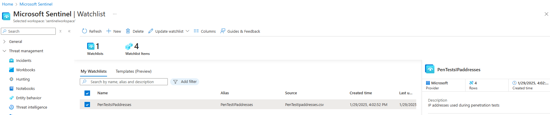 A watchlist egy testreszabható adatlista, amely tartalmazhat például gyanús IP-címeket, felhasználókat, eszközöket vagy egyéb releváns információkat a fenyegetések nyomon követéséhez. Ezeket a listákat a lekérdezésekben, riasztásokban és automatizációkban használhatjuk, hogy gyorsabban azonosítsuk az ismert veszélyeket vagy szabálytalanságokat a rendszerben.