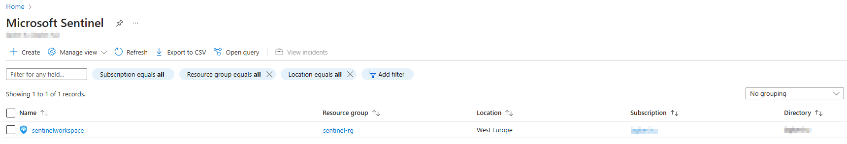 Log Analytics workspace elkészítése Sentinelhez (itt tárolódik majd a rengeteg begyűjtött adat)